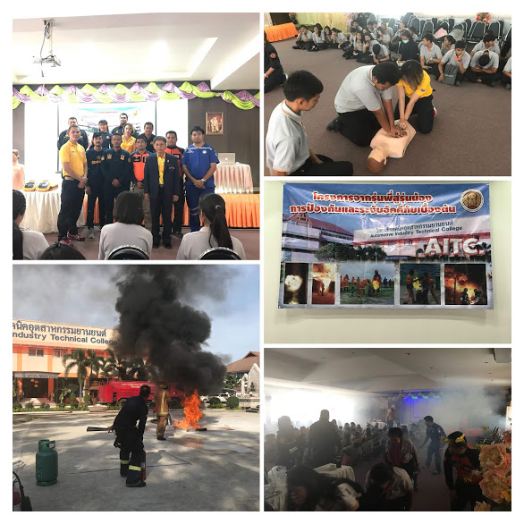 ได้รับความร่วมมือจาก เจ้าหน้าที่ดับเพลิงและกู้ภัย 3 ส่วนเทคนิคป้องกันไฟดับเพลิง และกู้ภัยท่าอากาศยานดอนเมืองพร้อมด้วยทีมงาน ณ วิทยาลัยเทคนิคอุตสาหกรรมยานยนต์