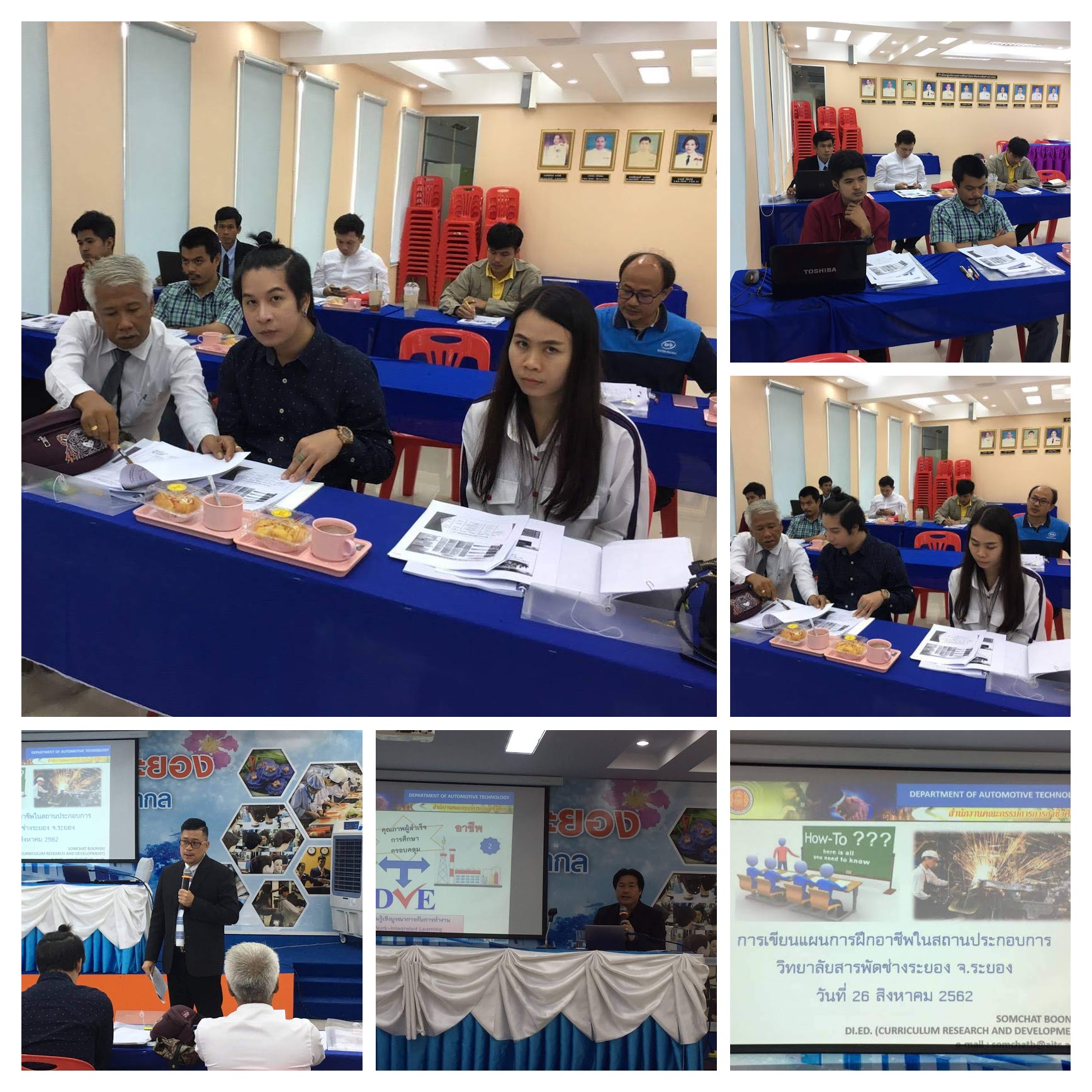 วันที่ 26 สิงหาคม 2562 นายวีระชัย สมบัติกำไร รองผู้อำนวยการบริหารฝ่ายวิชาการ วิทยาลัยเทคนิคอุตสาหกรรมยานยนต์ บรรยายพิเศษการจัดการเรียนการสอน ระบบทวิภาคี และนายสมชาติ บุญศรี หัวหน้างานพัฒนาหลักสูตรการเรียน การสอน วิทยาลัยเทคนิคอุตสาหกรรมยานยนต์ บรรยายการเขียนแผนการฝึกอาชีพ ในสถานประกอบการ ณ วิทยาลัยสารพัดช่างระยอง จ.ระยอง