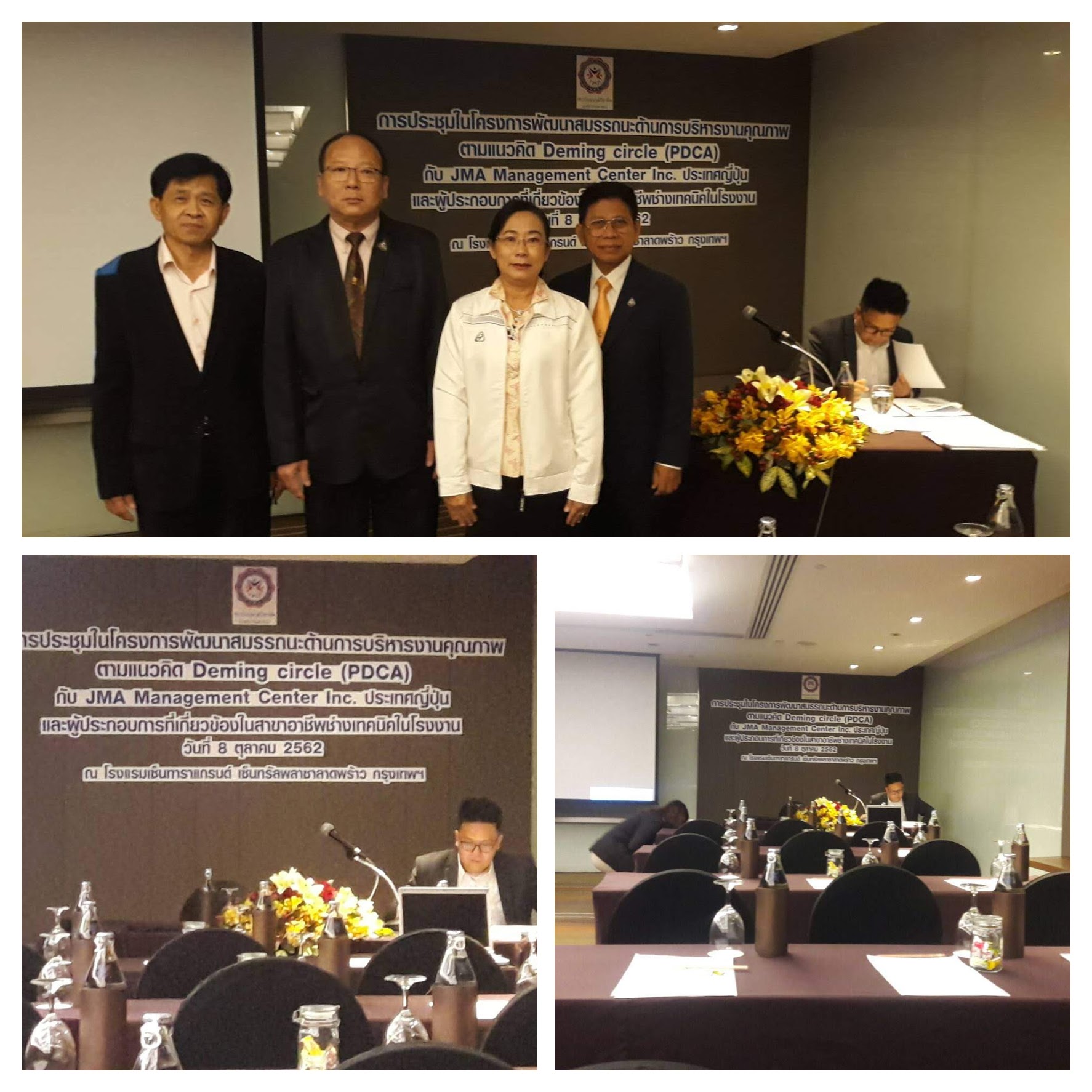 วันที่ 8 ตุลาคม 2562 นายมนตรี หาเรือนทรง ผู้อำนวยการวิทยาลัยเทคนิคอุตสาหกรรมยานยนต์ เข้าร่วมประชุม ในโครงการ พัฒนาสมรรถนะ ด้านการบริหารงานคุณภาพ ตามแนวคิด Deming circle (PDCA) กับ JMD Management Center Inc. ประเทศญี่ปุ่น และผู้ประกอบการที่เกี่ยวข้องในสาขาอาชีพช่างเทคนิคในโรงงาน ณ โรงแรมเซ็นทาราแกรนด์ เซ็นทรัลพลาซาลาดพร้าว กรุงเทพฯ