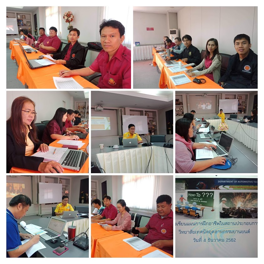 วันที่ 4 ธันวาคม 2562 เวลา 9.00 น. นายวีระชัย สมบัติกำไร ผู้อำนวยการ วิทยาลัยเทคนิคอุตสาหกรรมยานยนต์ เป็นประธานกล่าวเปิดการประชุม การเขียนแผนการฝึกอาชีพในสถานประกอบการ โดยมี ดร.สมชาติ บุญศรี หัวหน้างานหลักสูตรทวิภาคี เป็นผู้กล่าวบรรยายวิธีการเขียนแผน แก่คณะอาจารย์ วิทยาลัยเทคนิคอุตสาหกรรมยานยนต์ ณ ห้องประชุมเล็ก วิทยาลัยเทคนิคอุตสาหกรรมยานยนต์