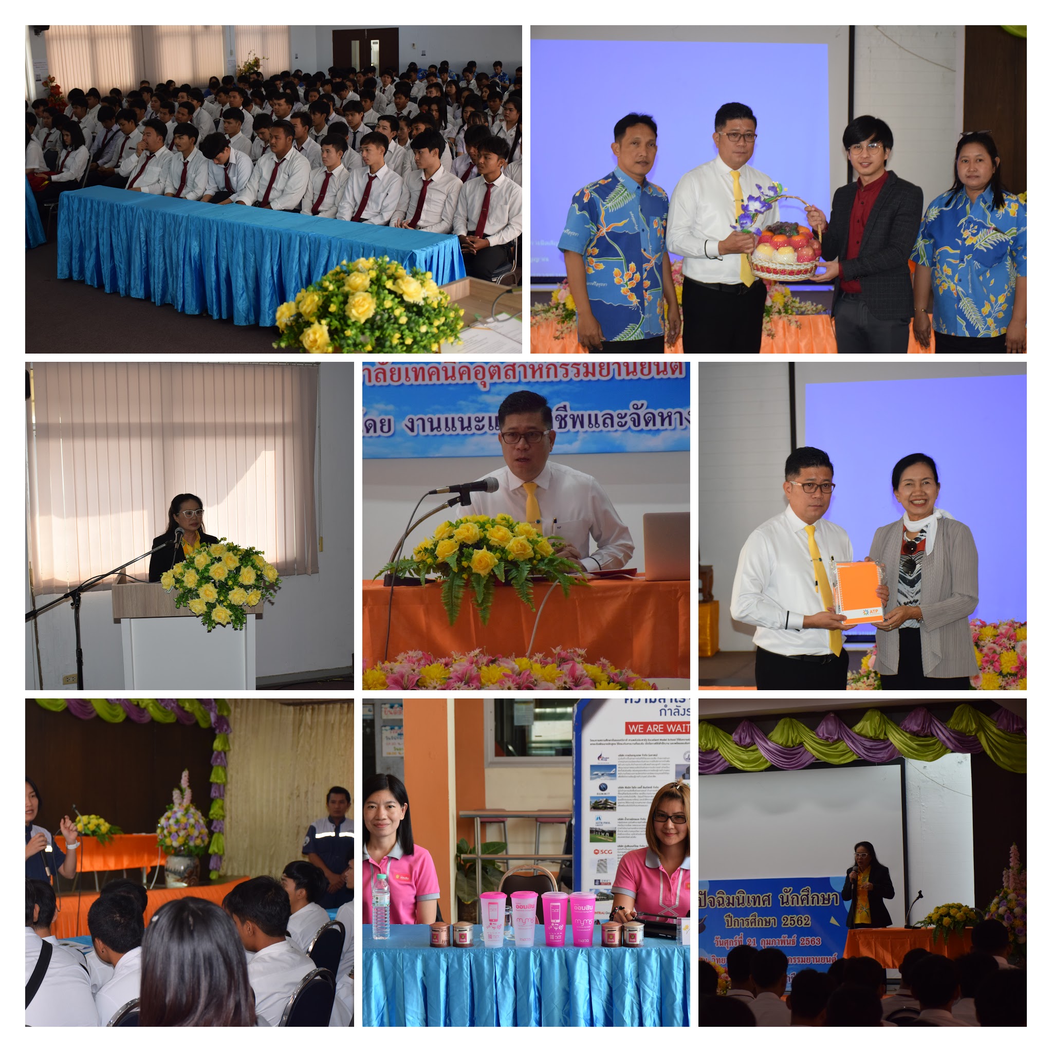 วันที่ 21 กุมภาพันธ์ 2563 นายวีระชัย สมบัติกำไร ผู้อำนวยการ วิทยาลัยเทคนิคอุตสาหกรรมยานยนต์ เป็นประธาน กล่าวเปิดงาน ปัจฉิมนิเทศนักศึกษา ประจำปีการศึกษา 2562 พร้อมบรรยายพิเศษและ เป็นตัวแทนคณะอาจารย์ส่งมอบความสำเร็จ ความโชคดี แก่นักศึกษาที่สำเร็จการศึกษาประจำปีการศึกษา 2562 โดยมี นางนทีทิพ แสนสุข รองผู้อำนวยการ วิทยาลัยเทคนิคอุตสาหกรรมยานยนต์ กล่าวรายงานสรุป พร้อมคณะอาจารย์ วิทยาลัยเทคนิคอุตสาหกรรมยานยนต์ ณ หอประชุม วิทยาลัยเทคนิคอุตสาหกรรมยานยนต์
