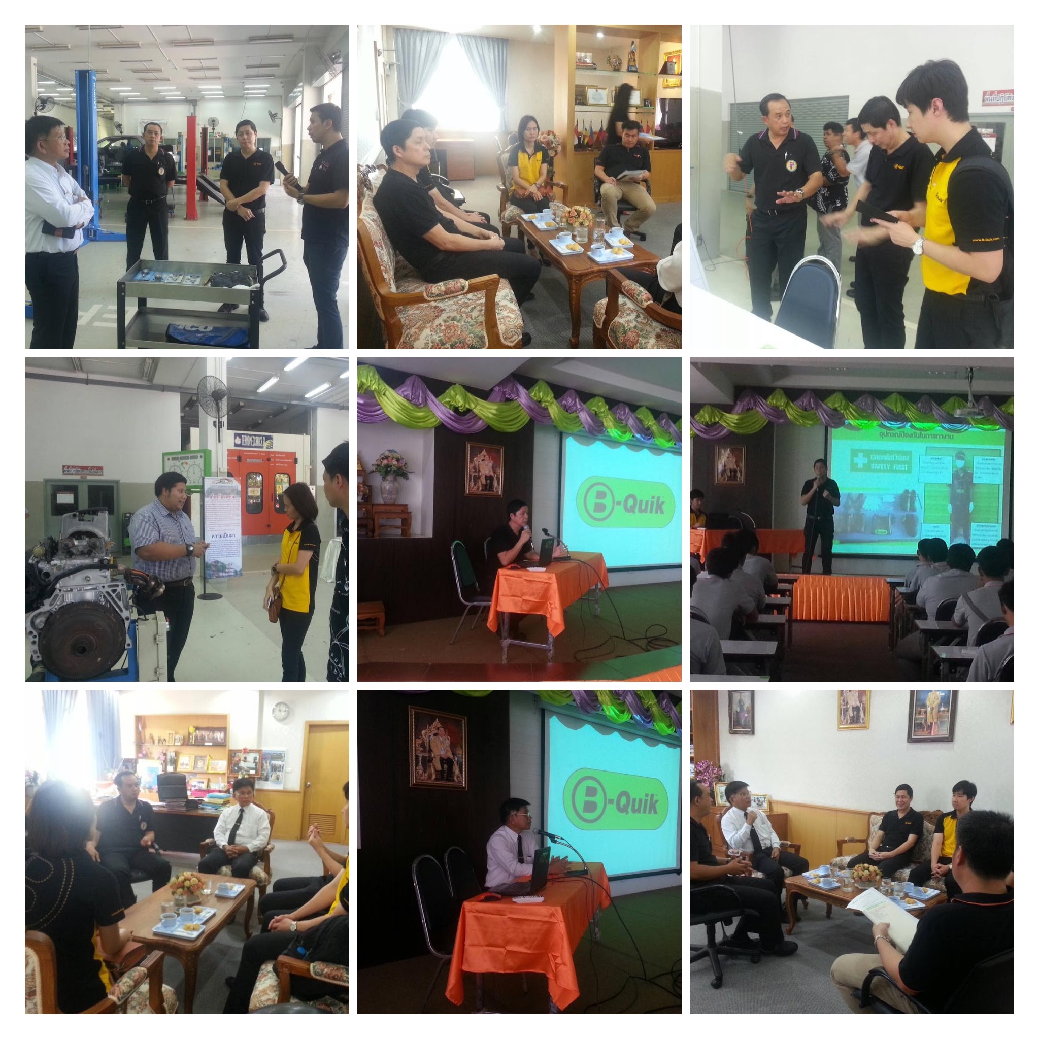 วันที่ 1 กันยายน 2560 นายมนตรี หาเรือนทรง ผู้อำนวยการวิทยาลัยเทคนิคอุตสาหกรรมยานยนต์ นายอรรถพันธ์ นามกูล รองฯฝ่ายวิชาการ และคณะครู ให้การต้อนรับ คณะจาก B-QUIK CO LTD นำโดย คุณดนัย ชินานนท์ ผู้อำนวยการฝ่ายบริหารทรัพยากรบุคคล ได้เข้ามาทำความเข้าใจกับนักศึกษาก่อนฝึกอาชีพใน บ.B-QUIK ในการนี้ได้ร่วมปรึกษาแนวทางในการจัดการศึกษาของวิทยาลัยฯ เพื่อให้ตรงกับสมรรถนะที่สถานประกอบการต้องการ และเข้าเยี่ยมชมการจัดสถานีทดสอบคุณวุฒิวิชาชีพงานบริการยางรถยนต์