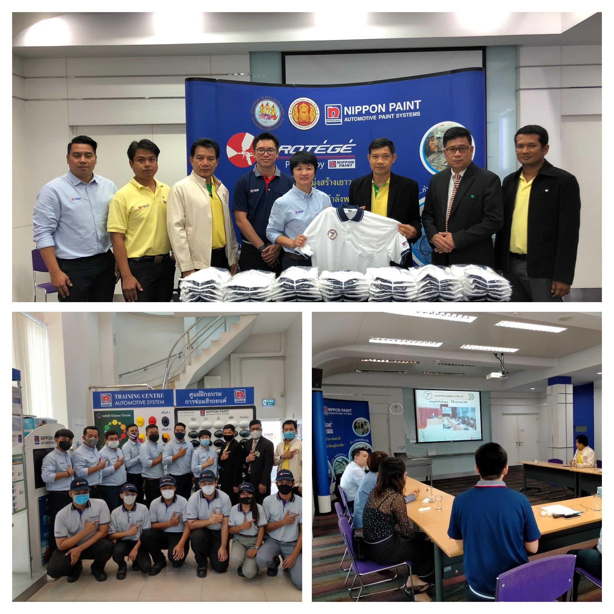วันที่ 3 สิงหาคม 2563 นายวีระชัย สมบัติกำไร ผู้อำนวยการวิทยาลัยเทคนิคอุตสาหกรรมยานยนต์ และอาจารย์ ที่ปรึกษา เข้าตรวจเยี่่ยมนักศึกษาฝึกอาชีพในสถานประกอบการ บริษัทนิปปอน เพนต์ และร่วมพิธี กับประธานชมรมวิชาชีพเทคโนโลยีงานสีและตัวถังรถยนต์ รับมอบเสื้อชมรม จากบริษัท นิปปอน เพนต์