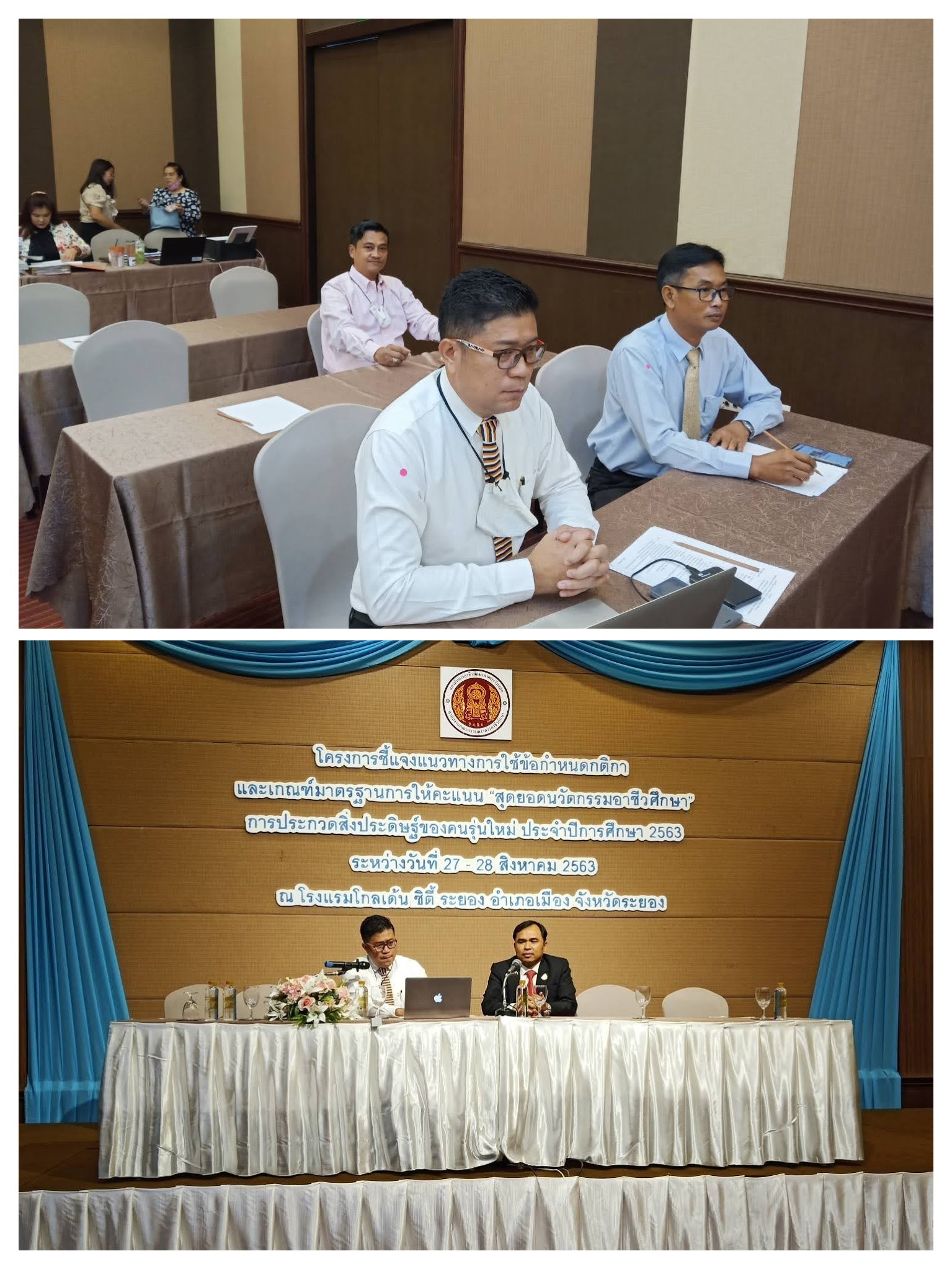 วันที่ 27-28 สิงหาคม 2563 นายวีระชัย สมบัติกำไร ผู้อำนวยการ วิทยาลัยเทคนิคอุตสาหกรรมยานยนต์ และคณะผู้บริหาร วิทยาลัย เข้าร่วมประชุม การประกวดสิ่งประดิษฐ์ของคนรุ่นใหม่ประจำปีการศึกษา 2563 ณ โรงแรม โกลเด้น ซิตี้ ระยอง อำเภอเมือง จังหวัดระยอง