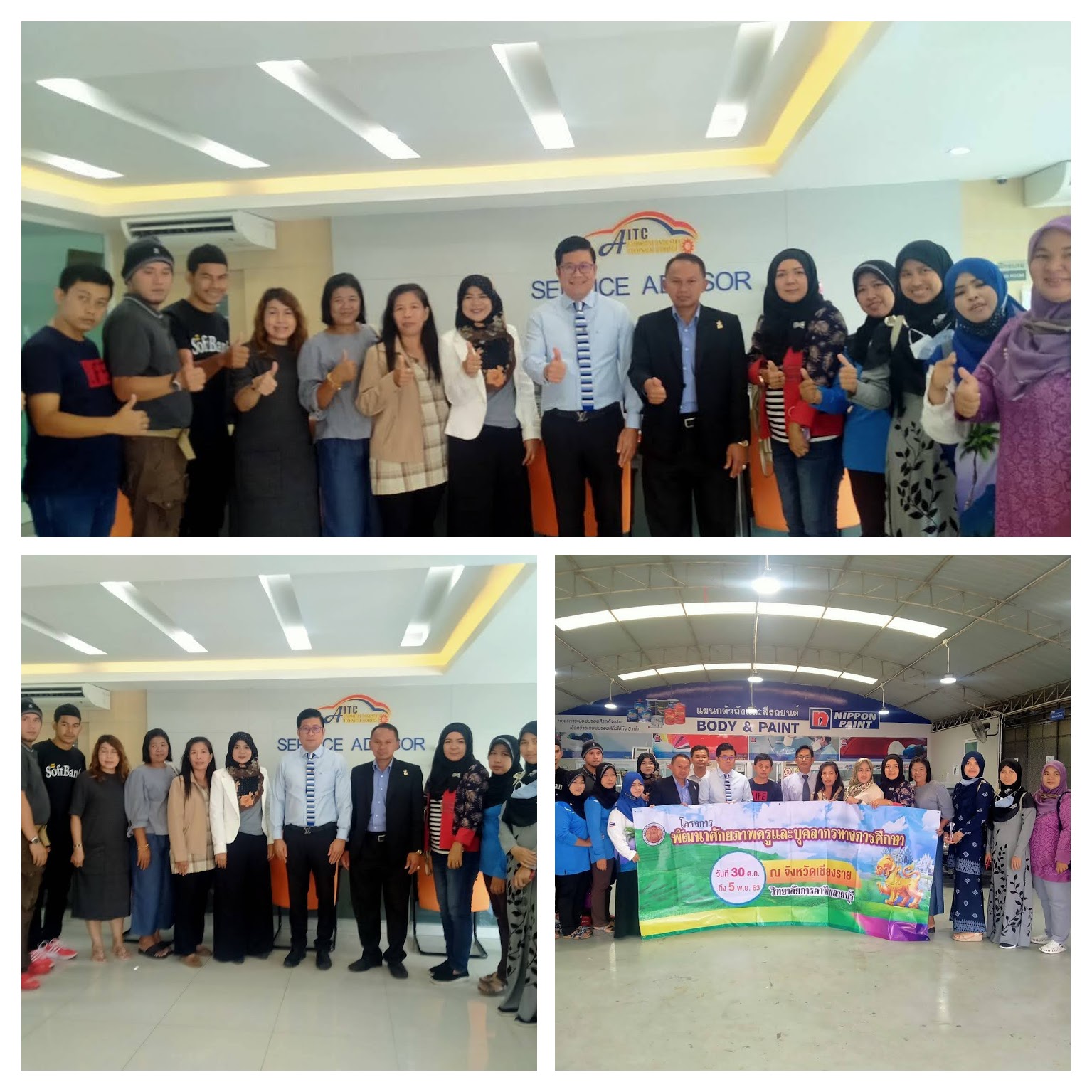วันที่ 3 พฤศจิกายน 2563 นายวีระชัย สมบัติกำไร ผู้อำนวยการ วิทยาลัยเทคนิคอุตสาหกรรมยานยนต์ คณะผู้บริหารและคณะอาจารย์ เจ้าหน้าที่ วิทยาลัยเทคนิคอุตสาหกรรมยานยนต์ ให้การต้อนรับ ผู้บริหารและคณะอาจารย์ จากวิทยาลัยการอาชีพสายบุรี เข้าศึกษาดูงาน ณ วิทยาลัยเทคนิคอุตสาหกรรมยานยนต์