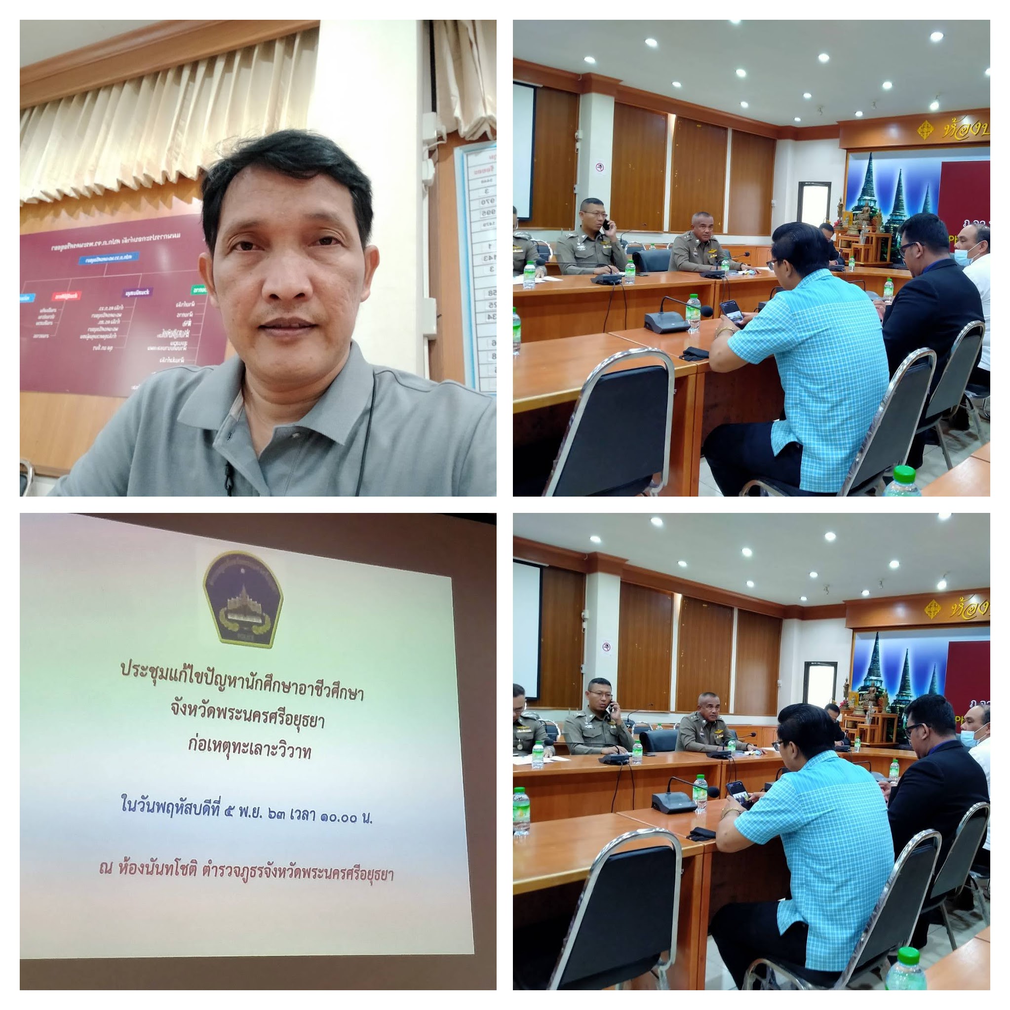 วันที่ 5 พฤศจิกายน 2563 นายพิเนตร ธาระมัต หัวหน้างานฝ่ายปกครอง วิทยาลัยเทคนิคอุตสาหกรรมยานยนต์ เข้าร่วมประชุม การแก้ไขปัญหา นักศึกษาอาชีวศึกษา จังหวัดพระนครศรีอยุธยา ก่อเหตุทะเลาะวิวาท ณ ห้องนันทโชติ สถานีตำรวจภูธรจังหวัดพระนครศรีอยุธยา