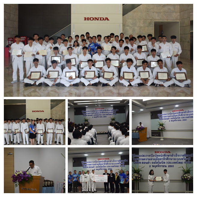 พิธีมอบประกาศนียบัตรและรับทุนการศึกษานักศึกษาสำเร็จการฝึกอาชีพ โครงการความร่วมมืออาชีวศึกษาระบบทวิภาคี บริษัท ฮอนด้า ออโตโมบิล (ประเทศไทย) จำกัด