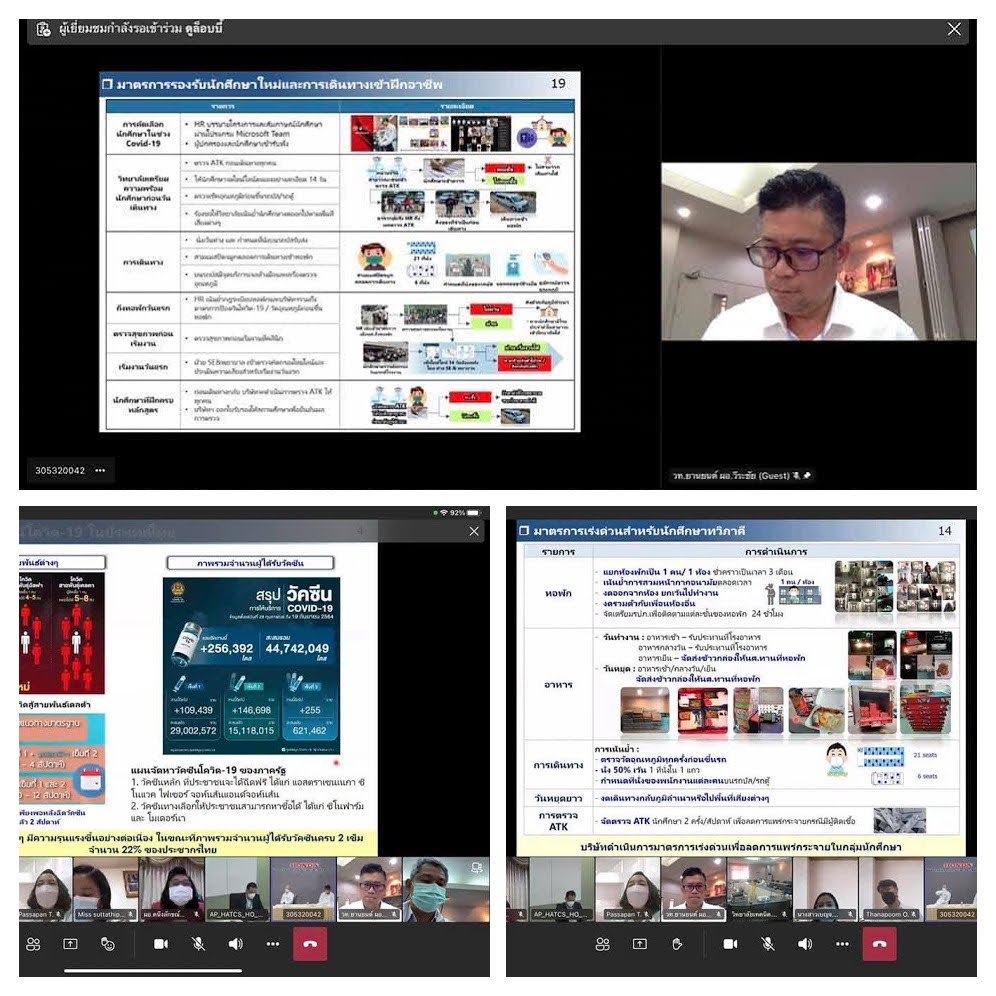วันที่ 22 กันยายน 2564 นายวีระชัย สมบัติกำไร ผู้อำนวยการวิทยาลัย พร้อมด้วยคณะผู้บริหาร วิทยาลัยเทคนิคอุตสาหกรรมยานยนต์ และผู้บริหารจากวิทยาลัยในสังกัดอาชีวศึกษาจำนวน 34 แห่ง ได้เข้าร่วมประชุมกับผู้บริหารและทีมงาน ษริษัทฮอนด้า ออโตโมบิล ประเทศไทย จำกัด ได้จัดการประชุมออนไลน์เพื่อชี้แจงถึงมาตรการป้องกันเชื้อไวรัสโควิด-19 ให้ทางวิทยาลัยฯ รับทราบถึงสถานการณ์ปัจจุปันและแนวทางการดูแลนักศึกษาตลอดการฝึกอาชีพในโรงงานประกอบรถยนต์ฮอนด้า ในครั้งนี้