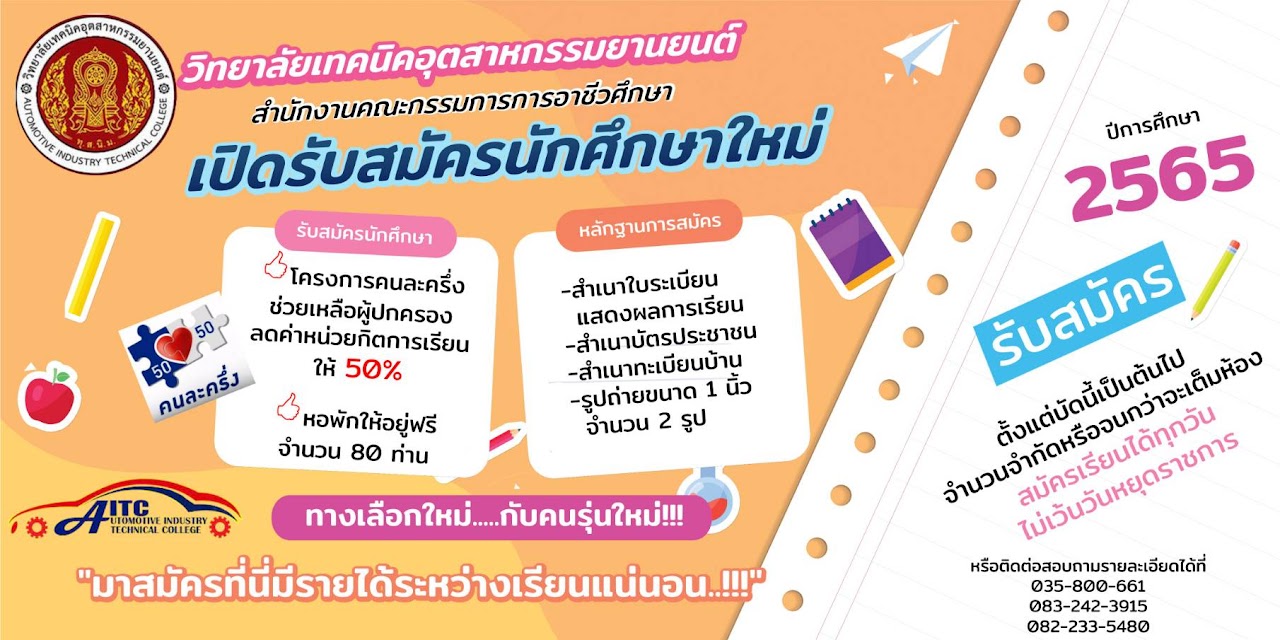📢 มีข่าวดีๆมาบอก รีบตัดสินใจและช่วยบอกต่อ สมัครเรียนที่วิทยาลัยเทคนิคอุตสาหกรรมยานยนต์วันนี้..(?)
