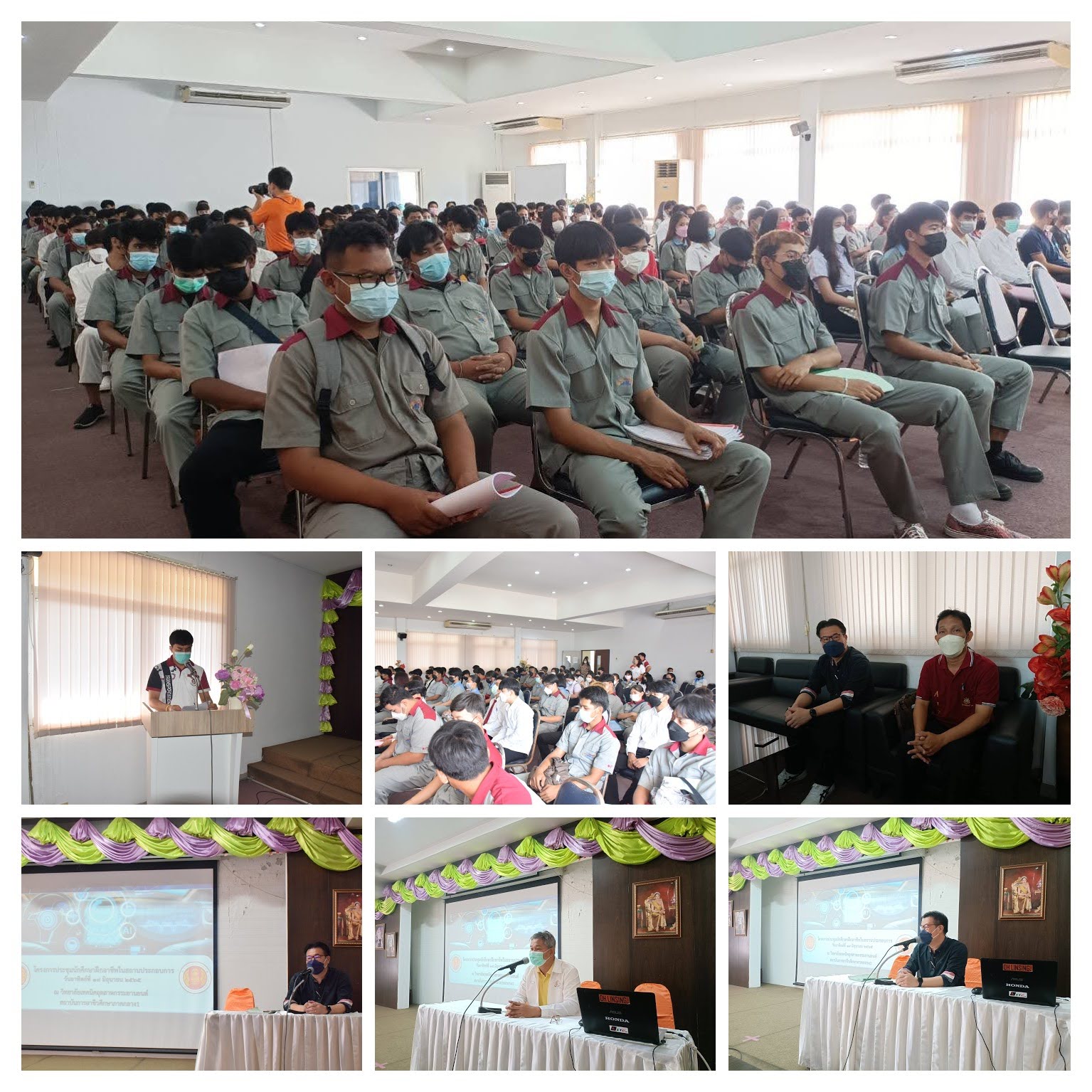 วันที่ 19 มิถุนายน 2565 นายทัศนัย ฉุนชื่นจิตต์ รองผู้อำนวยการฝ่ายวิชาการ วิทยาลัยเทคนิคอุตสาหกรรมยานยนต์ เป็นประธาน การประชุมนักศึกษาระบบทวิภาคี ฝึกอาชีพในสถานประกอบการ โดยมีห่วหน้างานทวิภาคี และครูที่ปรึกษา แต่ละสาขาวิชา เข้าประชุม ติดตามนักศึกษาฝึกอาชีพ และให้ความรู้ และติดตามความก้าวหน้า ณ หอประชุมวิทยาลัยเทคนิคอุตสาหกรรมยานยนต์