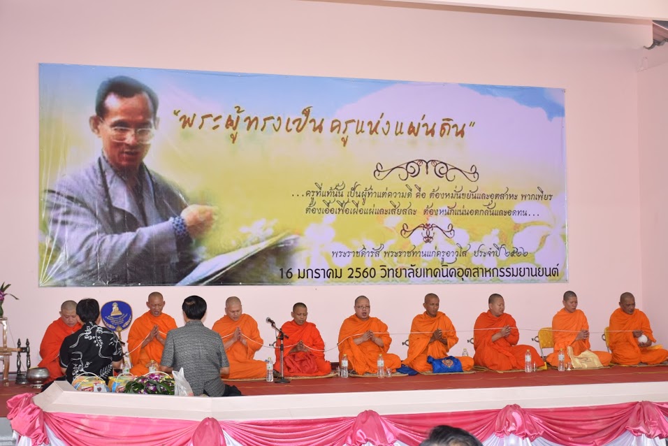 วันที่ 16 มกราคม 2560 วิทยาลัยเทคนิคอุตสาหกรรมยานยนต์ จัดกิจกรรมทำบุญตักบาตรเนื่องในวันครู ซึ่งมีข้าราชการครูและบุคลากรทางการศึกษา พร้อมด้วยนักเรียน เข้าร่วมพิธี
