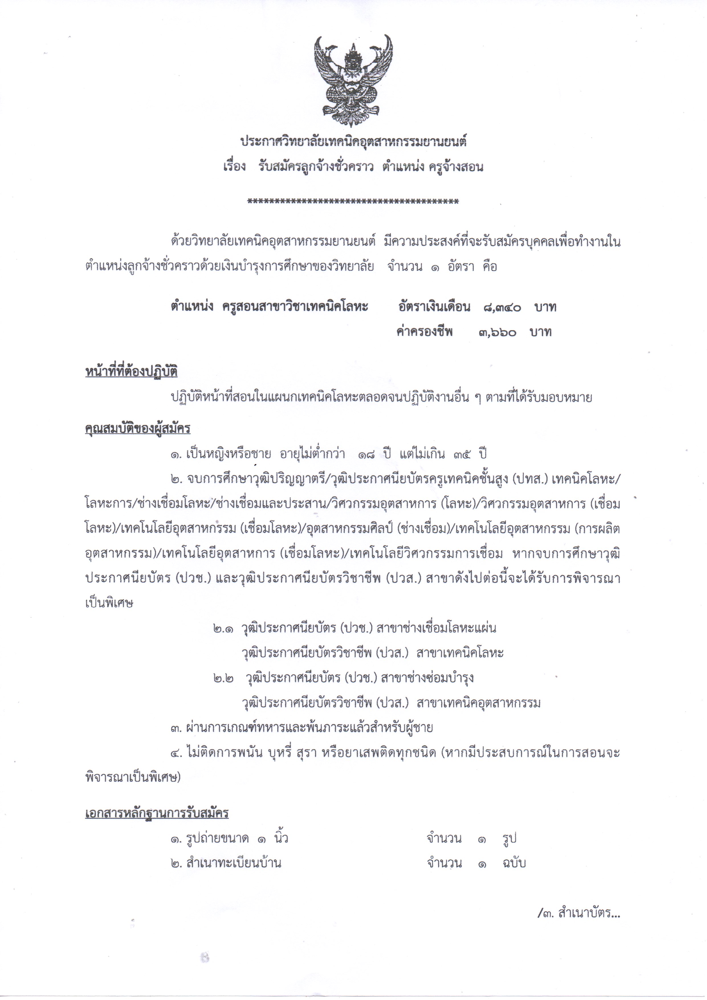 ประกาศ รับสมัครบุคคลเพื่อเลือกสรรเป็นครูอัตราจ้าง สาขาเทคนิคโลหะ