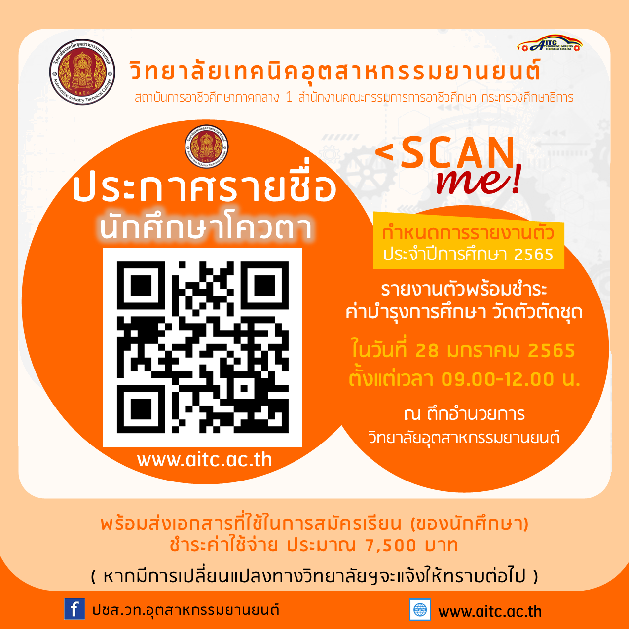 ประกาศวิทยาลัยเทคนิคอุตสาหกรรมยานยนต์ เรื่อง ประกาศรายชื่อนักศึกษาผู้ผ่านการพิจารณาได้รับสิทธิโควตา เข้าศึกษาต่อระดับประกาศนียบัตรวิชาชีพชั้นสูง(ปวส.)วิทยาลัยเทคนิคอุตสาหกรรมยานยนต์ ปีการศึกษา 2565 >>คลิ๊ก<<