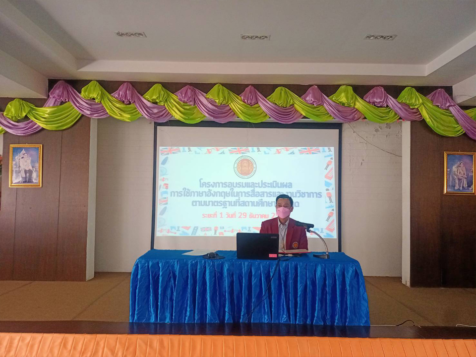 วันที่ 29-30 ธันวาคม 2564 นายชูชัย หันตรา รองผู้อำนวยการฝ่ายแผนงานและความร่วมมือ วิทยาลัยเทคนิคอุตสาหกรรมยานยนต์ เป็นประธานกล่าวเปิดโครงการอบรมและประเมินผลการใช้ภาษาอังกฤษในการสื่อสารและงานวิชาการตามมาตรฐานที่สถานศึกษากำหนด ซึ่งได้รับเกียรติจาก นายปรีชา แก้วมณี รองผู้อำนวยการฝ่ายบริหารทรัพยากร กล่าวรายงาน วัตถุประสงค์ของโครงการ โดยมีอาจารย์และบุคลากร เข้าร่วมการอบรม ณ ห้องประชุมยานยนต์ วิทยาลัยเทคนิคอุตสาหกรรมยานยนต์