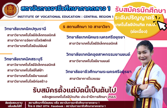 ประกาศเปิดรับสมัครนักศึกษาระดับปริญญาตรี ทล.บ. (ต่อเนื่อง) ประจำปีการศึกษา 2565 รายละเอียดการรับสมัครเรียนและกำหนดการ >>คลิ๊ก<<
