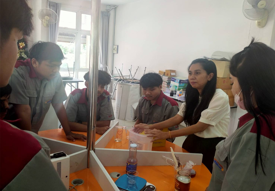 วันที่ 2 ตุลาคม 2563 นางสาวขวัญดาว ศิริแพทย์ และคณะอาจารย์ ร่วมกันจัดฝึกอบรม การทำน้ำยาอิเล็กโตรไลท์ ให้กับนักศึกษาและผู้สนใจทั่วไป เพื่อนำไปใช้ประโยชน์ ล้างทำความสะอาด เชื้อโรค ป้องกัน Covid 19 ณ อาคารวิทยบริการ วิทยาลัยเทคนิคอุตสาหกรรมยานยนต์