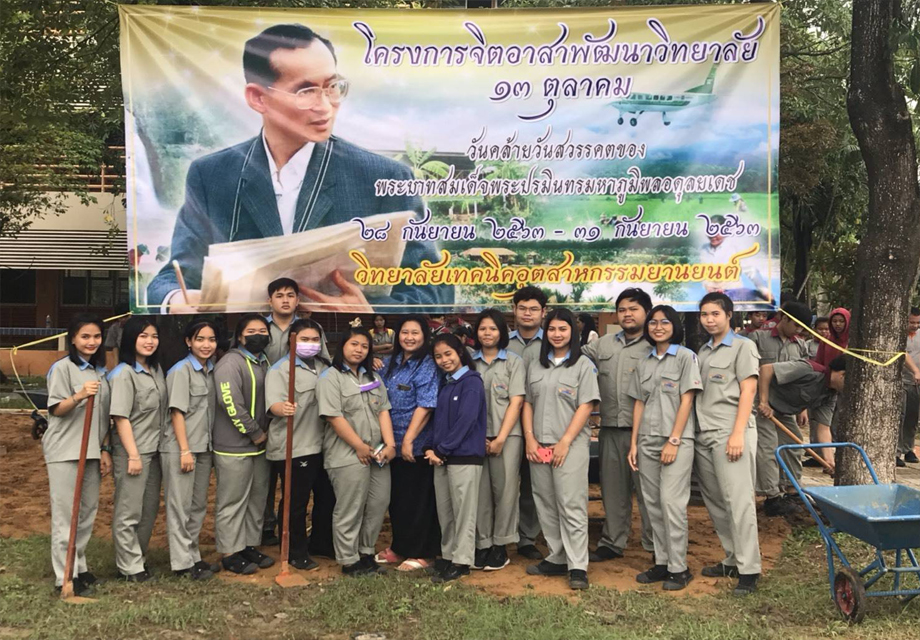 โครงการจิตอาสาพัฒนาวิทยาลัย 13 ตุลาคม วันคล้ายวันสวรรคตของพระบาทสมเด็จ พระปรมินทรมหาภูมิพลอดุลยเดช ในระหว่างวันที่ 28 – 31 กันยายน 2563 ปรับปรุงทดแทนพื้นที่จอดรถจักรยานยนต์ของนักศึกษา ณ หน้าตึกเรียนรวม 4 ชั้น วิทยาลัยเทคนิคอุตสาหกรรมยานยนต์