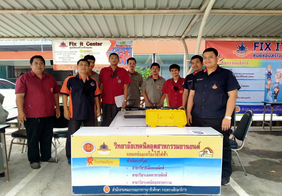 วันที่ 23 กันยายน 2563 วิทยาลัยเทคนิคอุตสาหกรรมยานยนต์ ได้จัดทำ โครงการพัฒนารูปแบบและยกระดับศูนย์ซ่อมสร้างเพื่อชุมชน Fix it center Thailand 4.0 ขึ้น เนื่องในโอกาสวันเฉลิมพระชนมพรรษา สมเด็จพระนางเจ้าสิริกิต์ พระบรมราชชนนี พันปีหลวง 12 สิงหาคม 2563 ระหว่างวันที่ 23 -25 กันยายน 2563 ณ บริเวณด้านประตูทางเข้า ทางออก ด้านข้าง วิทยาลัยเทคนิคอุตสาหกรรมยานยนต์