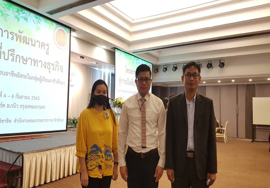วันที่ 4 กันยายน 2563 นายวีระชัย สมบัติกำไร ผู้อำนวยการวิทยาลัยเทคนิคอุตสาหกรรมยานยนต์ และนายปรีชา แก้วมณี รองผู้อำนวยการฝ่ายแผนและความร่วมมือ พร้อมด้วย นางสาวปาริชาติ เรืองยศ หัวหน้าศูนย์บ่มเพาะธุรกิจ วิทยาลัยเทคนิคอุตสาหรรมยานยนต์ เข้าร่วมโครงการพัฒนาครูสู่การเป็นที่ปรึกษาธุรกิจ โครงการส่งเสริมการประกอบอาชีพอิสระในผู้เรียนอาชีวศึกษา