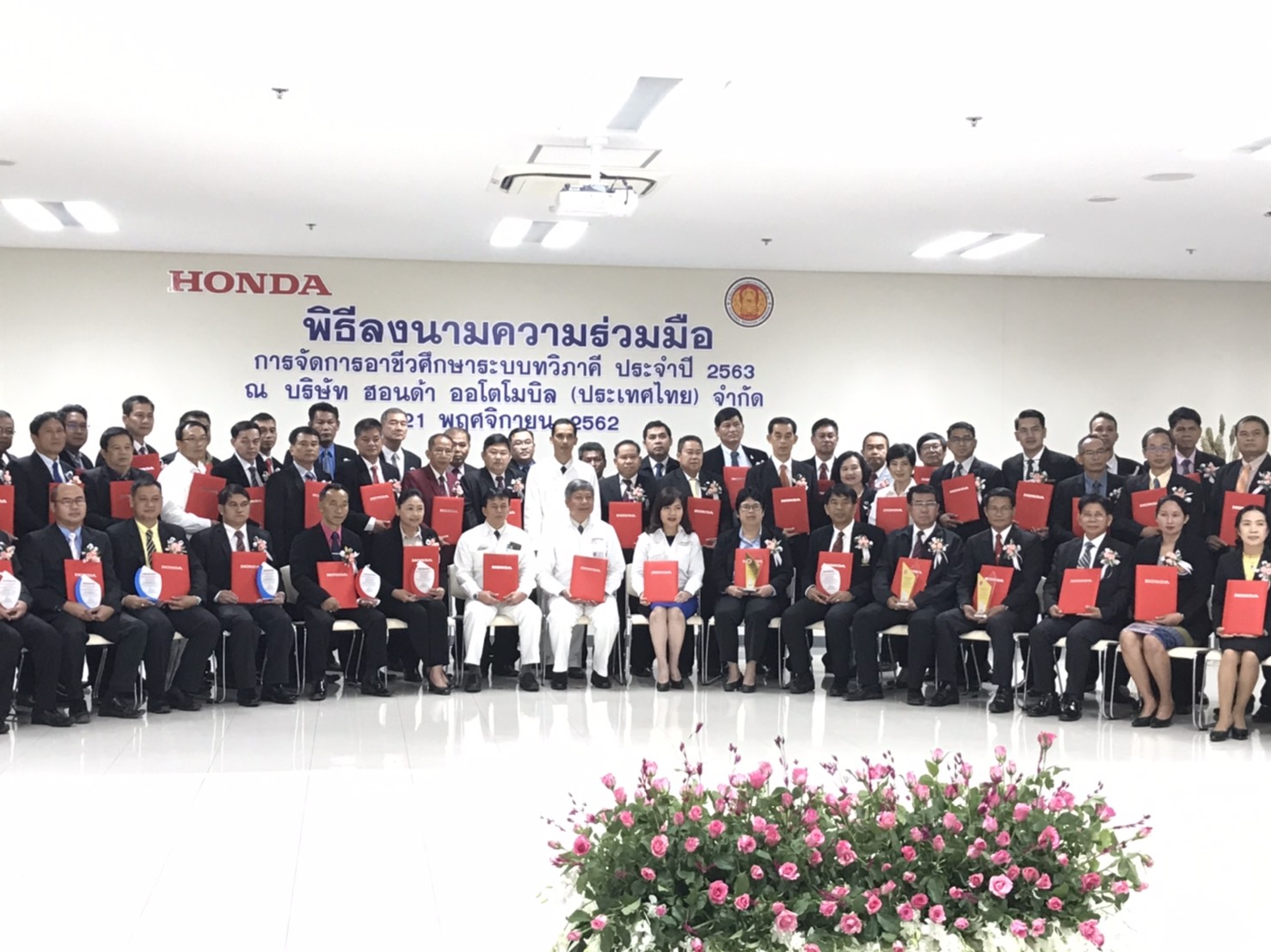 วันที่ 21 พฤศจิกายน 2562 นายมนตรี หาเรือนทรง ผู้อำนวยการ วิทยาลัยเทคนิคอุตสาหกรรมยานยนต์ พร้อมด้วย นายสันติสุข หอมชื่น อาจารย์แผนกเทคนิคการผลิต ร่วมลงนามความร่วมมือ
