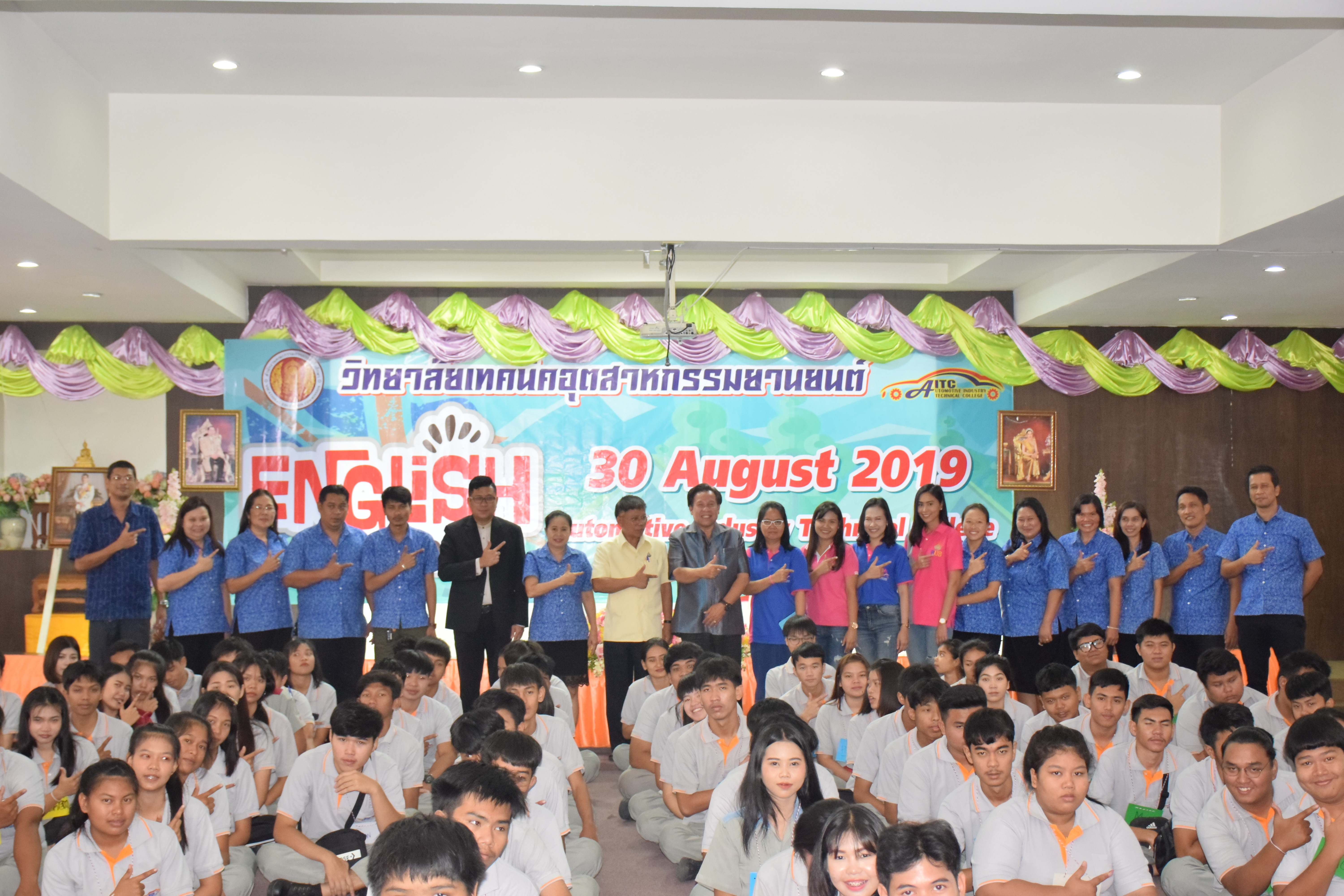 วันที่ 30 สิงหาคม 2562 นายมนตรี หาเรือนทรง ผู้อำนวยการวิทยาลัยเทคนิคอุตสาหกรรมยานยนต์ เป็นประธานกล่าวเปิดงาน โครงการเข้าค่าย (English Camp) ประจำปีการศึกษา 2562 โดยมี นายวีระชัย สมบัติกำไร รองผู้อำนวยการบริหารฝ่ายวิชาการ กล่าวรายงาน และนางนธีทิพ แสนสุข รองผู้อำนวยการบริหารฝ่ายพัฒนากิจการนักเรียนนักศึกษา พร้อมด้วยคณะครูอาจารย์ เจ้าหน้าที่ คณะวิทยากร เข้าร่วมรับฟังบรรยาย โครงการ ณ วิทยาลัยเทคนิคอุตสาหกรรมยานยนต์