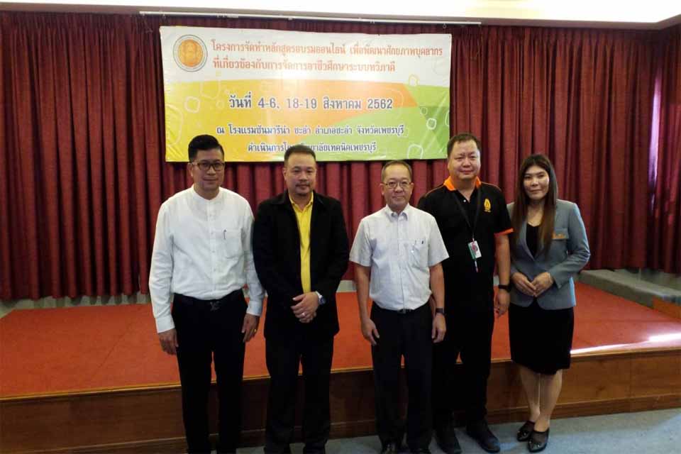 วันที่ 18-19 สิงหาคม 2562 นายวีระชัย สมบัติกำไร รองผู้อำนวยการบริหารฝ่ายวิชาการ เข้าร่วมโครงการจัดทำหลักสูตรอบรมออนไลน์ เพื่อพัฒนาศักยภาพบุคลากร ที่เกี่ยวข้องกับการจัดการ