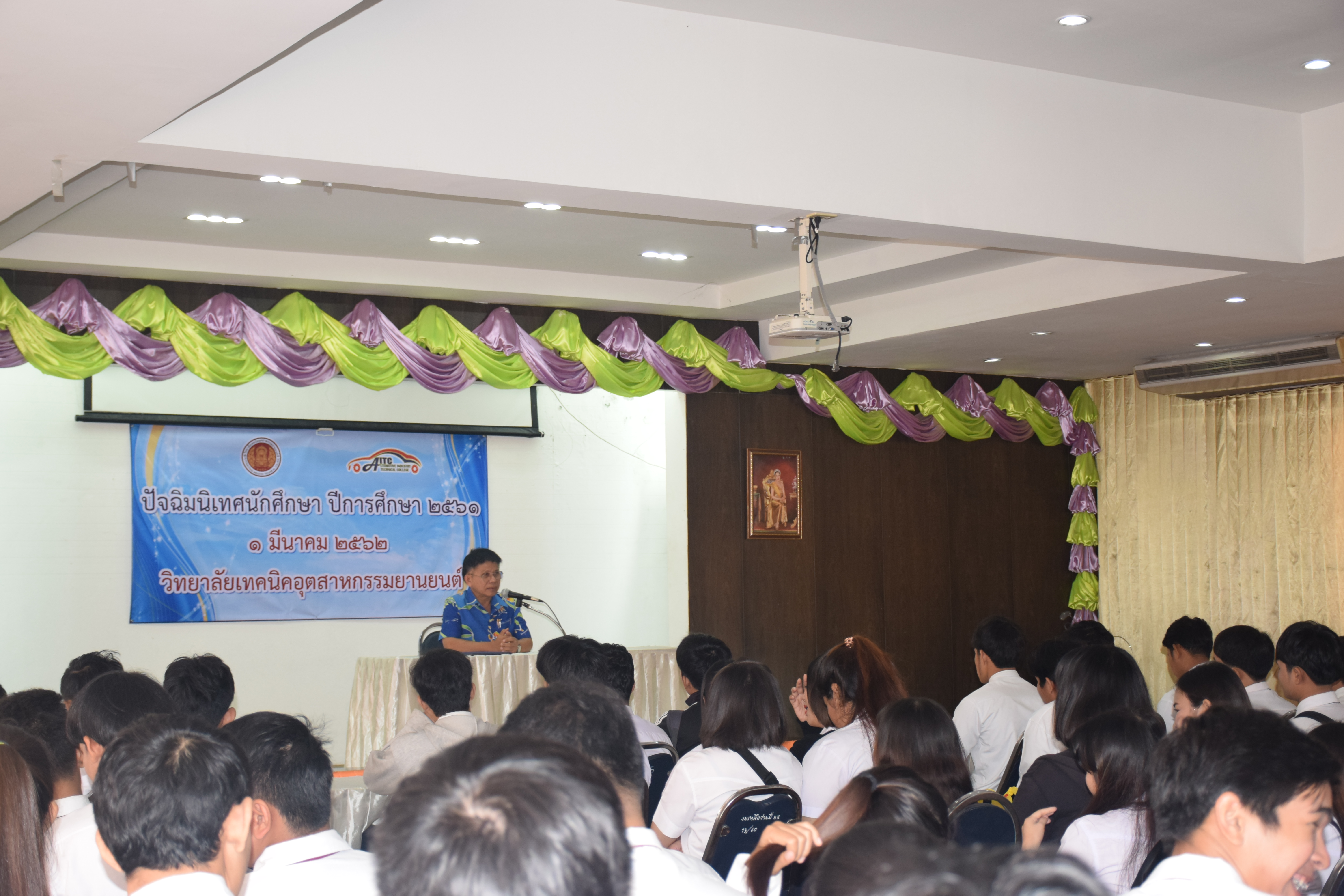 วันที่ 25 เมษายน 2562 นายวีระชัย สมบัติกำไร รองผู้อำนวยการฝ่ายวิชาการ นางนธีทิพ แสนสุข รองผู้อำนวยการฝ่ายพัฒนากิจการนักเรียนนักศึกษา วิทยาลัยเทคนิคอุตสาหกรรมยานยนต์ พร้อมด้วย นายสิทธิชัย ชำนาญ หัวหน้าแผนกสาขาวิชางานซ่อมตัวถังและสีรถยนต์ และ