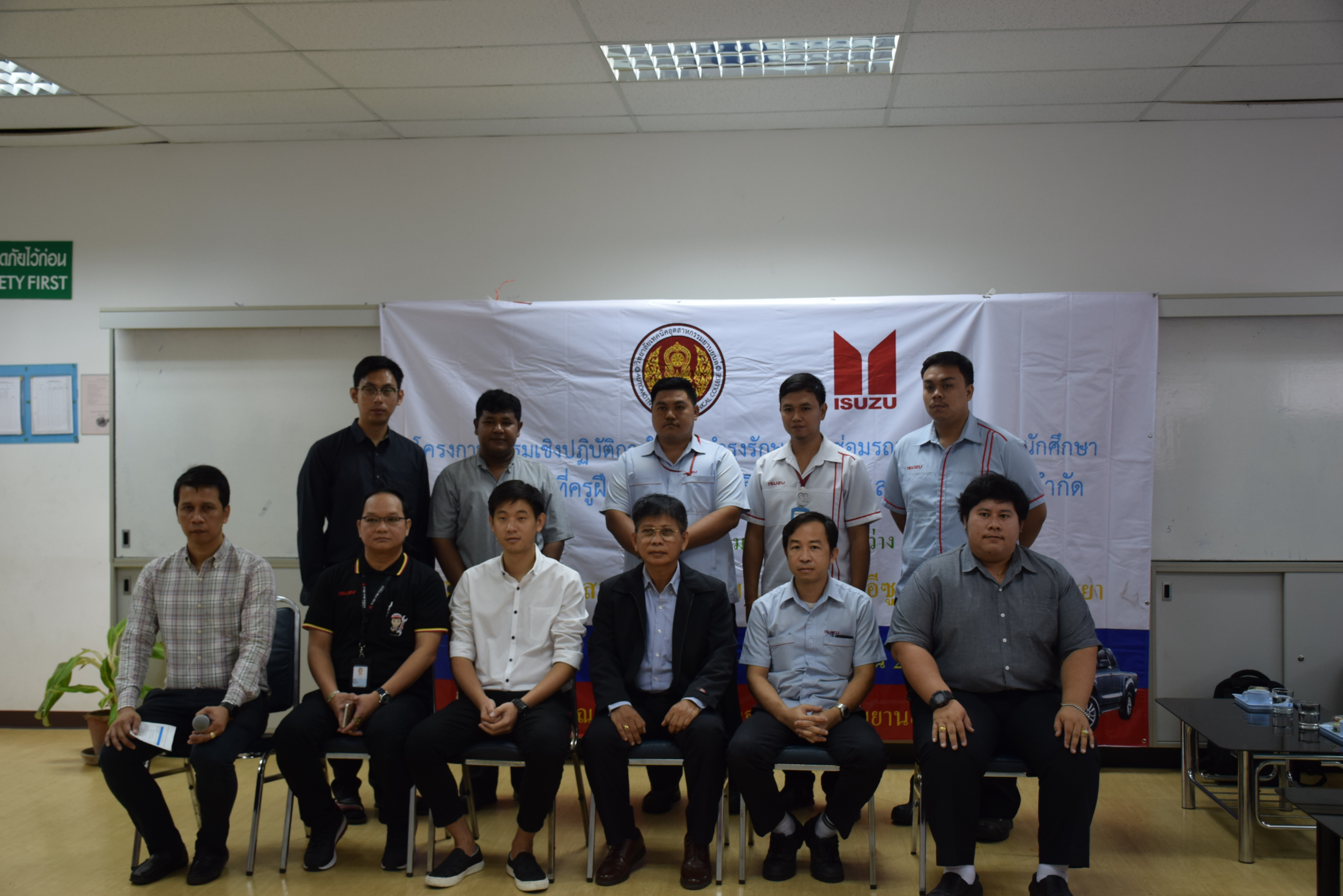 วันที่ 20 พฤศจิกายน 2561 นายมนตรี หาเรือนทรง ผู้อำนวยการ วิทยาลัยเทคนิคอุตสาหกรรมยานยนต์ เป็นประธานในพิธีเปิด “โครงการอบรมเชิงปฏิบัติการในการบำรุงรักษาและซ่อมแซมรถยนต์อีซูซุ ให้กับนักเรียนนักศึกษาโดยเจ้าหน้าที่ครูฝึกประจำศูนย์บริการ
