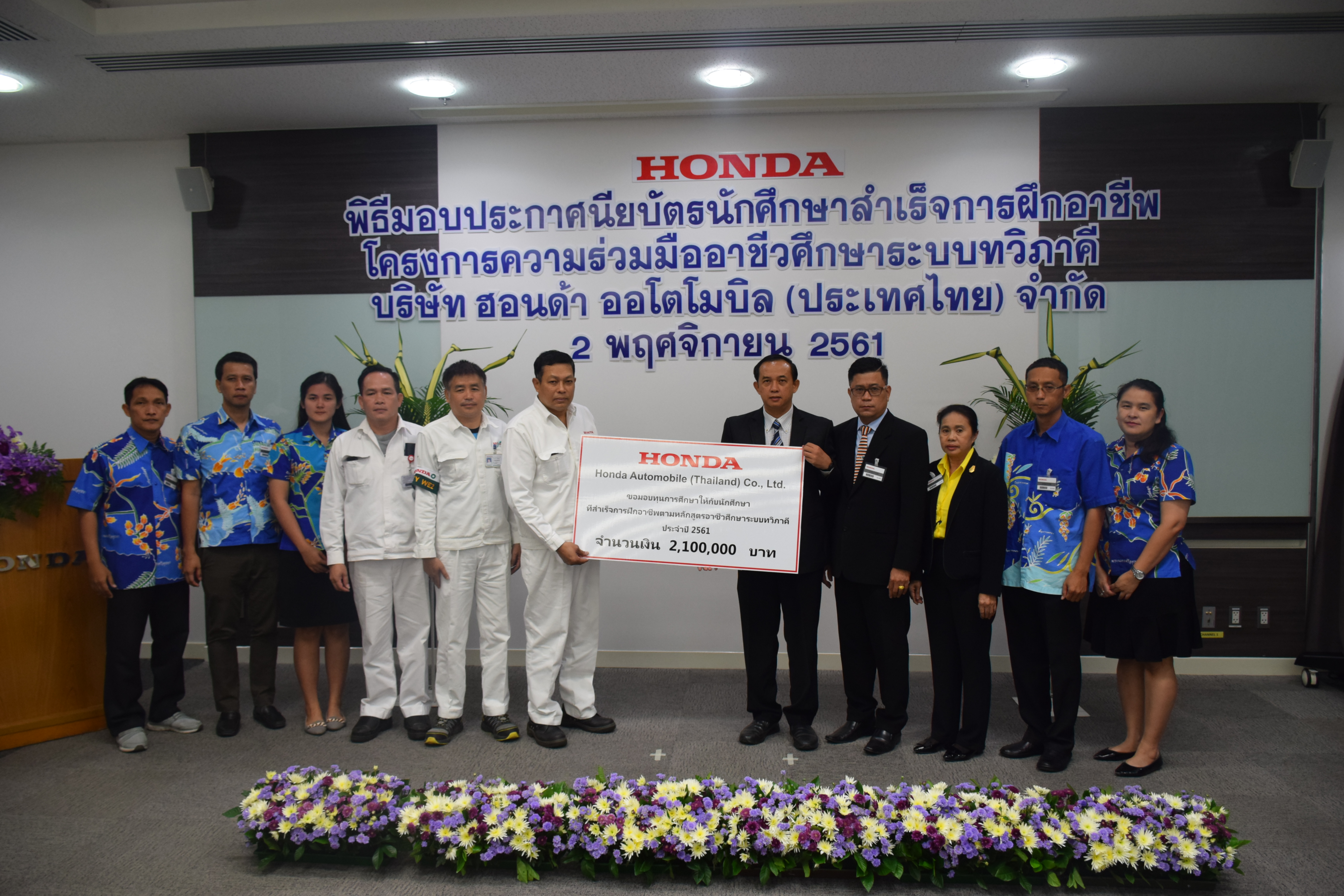 วันที่ 2 พฤศจิกายน 2561 นายอรรถพันธ์ นามกูล รองฯฝ่ายวิชาการและฝ่ายพัฒนากิจการนักเรียนนักศึกษา นายวีระชัย สมบัติกำไร รองฯฝ่ายแผนงานและความร่วมมือ นางนธีทิพ แสนสุข รองฯฝ่ายบริหารทรัพยากร วิทยาลัยเทคนิคอุตสาหกรรมยานยนต์ ได้นำคณะครู อาจารย์ เจ้าหน้าที่ เข้าร่วม