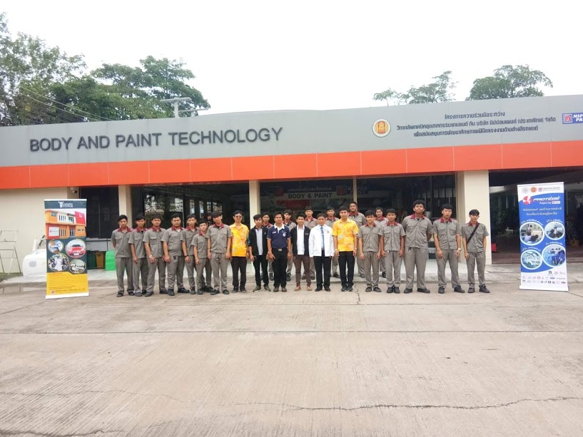 วันที่ 21 สิงหาคม 2561 นายมนตรี หาเรือนทรง ผู้อำนวยการ วิทยาลัยเทคนิคอุตสาหกรรมยานยนต์ และนายอรรถพันธ์ นามกูล รองฯฝ่ายวิชาการ ให้การต้อนรับผู้ครูฝึกงานตัวถังและสี จากบริษัท NIPPON PAINT (ประเทศไทย) จำกัด ให้การอบรมให้กับนักเรียน สาขางานตัวถังและสี