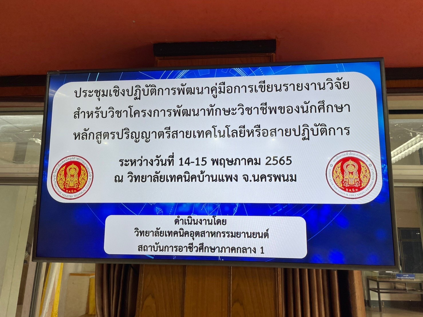 วันที่ 14พฤษภาคม 2565 คณะอาจารย์ วิทยาลัยเทคนิคอุตสาหกรรมยานยนต์ ได้เข้าประชุมเชิงปฎิบัติการพัฒนาคู่มือการเขียนรายงานวิจัย สำหรับวิชาโครงการพัฒนาทักษะวิชาชีพของนักศึกษาหลักสูตรปริญญาตรีสายเทคโนโลยีหรือสายปฎิบัติการ ระหว่างวันที่ 14-15 พฤษภาคม2565 ณ วิทยาลัยบ้านแพง จ.นครพนม