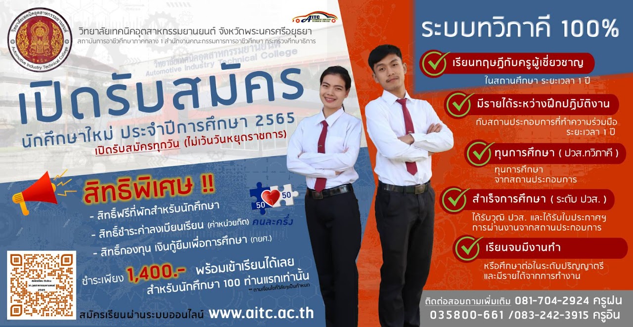📢 มีข่าวดีๆมาบอก รีบตัดสินใจและช่วยบอกต่อ สมัครเรียนที่วิทยาลัยเทคนิคอุตสาหกรรมยานยนต์วันนี้..(?)